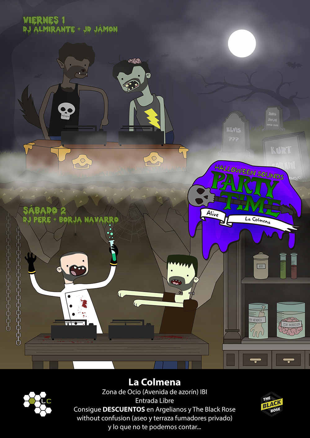 Posters collection for several rock music events in Black Rose Bar.