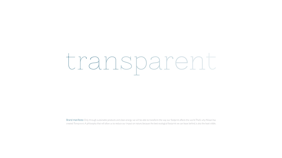 Transparent is a sub brand made for Nissan with the aim to promote the use of eco efficient products that will allow people to reduce their carbon footprint.